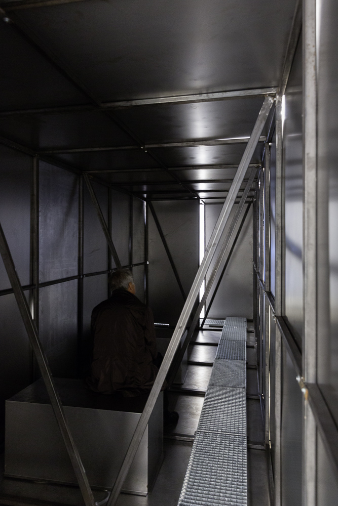 Anhaltend und intensiv ist Andreas Golinski den Geschichten rund um die Mintarder Ruhrtalbrücke nachgegangen. In seiner neuen Arbeit DIE LÜCKE, DIE DER KASTEN LÄSST münden diese in einer begehbaren Installation mit ausgeprägter Geräuschkulisse. Seine Objekte und Installationen sind von radikaler Reduktion geprägt und anti-dekorativ. Unter andrem reflektieren sie das Dilemma zwischen dem Drang nach Erinnerung einerseits und dem gleichzeitigen Vergessen sowie den blinden Flecken im kollektiven Gedächtnis andererseits, wobei letztere den Moment zwischen Gegenwart und Vergangenheit komprimieren.