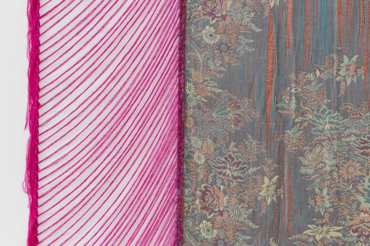 Die Textilobjekte und -installationen der Japanerin Aiko Tezuka widmen sich sowohl der Geschichte der Malerei als auch der des Textilen. Sie näht vertraute und fremde Motive auf gekaufte Textilien oder trennt in akribischer Handarbeit industriell hergestellte, aber auch selbst designte Stoffe in einzelne Fäden auf. In letzteren neuen Arbeiten verwebt Aiko Tezuka traditionelle Ornamente mit Alltagssymbolen und offenbart durch die Sezierung der einzelnen Stoffbestandteile die Qualität, die Tradition, die Geschichte und das System hinter uns allzu bekannt erscheinenden Dingen.