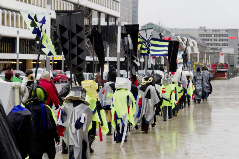 In collaboration with a Dortmund school class (Martin Luther King School), Jérôme Chazeix will workshop costumes and props for a public parade through the Dortmund city area. In this workshop, costumes as well as musical instruments will be made and dance choreography will be rehearsed. The group of children will then parade through the city center of Dortmund and be filmed by a camera team (Elementree Medienproduktion/ Dortmund).