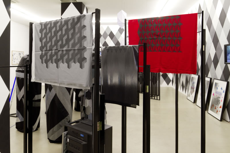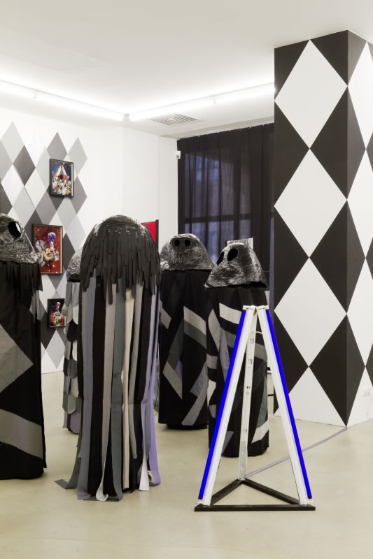 Jérôme Chazeix's works act as stages for theatrical installations. They gain their special quality through confronting contemporary consumer worlds: by citing specific techniques and formal languages, they address the living environment, but do not subject themselves to the dictatorship of passive consumption. Instead, they celebrate a resistance through carnivalesque appropriation of the behavioral repertoire, as it is communicated worldwide through fashion, among other things. The desire to transform contemporary ‘role models’ in a musical manner mixes their genuine fascination with tongue-in-cheek banter. Thanks to the combination of different media, such as works on paper (drawings and prints), three-dimensional objects, video, sound and performance, Le souffle / der Atemzug invites the spectator to enter a specific world and atmosphere.