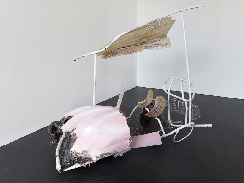 In their exhibition Golf Musk, the artist duo Ben Burgis (*1983 in England) and Ksenia Pedan (*1986 in the Ukraine) raise questions about the meaning of status symbols and the resulting material hierarchies. Set between freeway landscape and interior, the exhibition presents objects shaped like golf carts, animals and geometrical forms. The vehicles and items, transformed into monstrous yet sensual sculptures, express childlike desires alongside social, musky decadence.