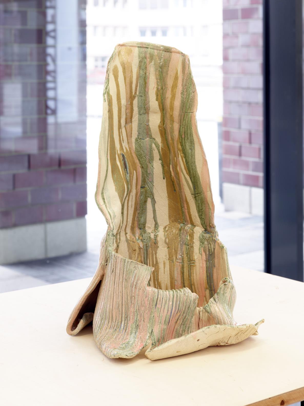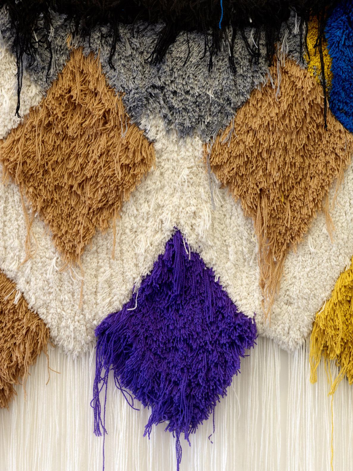 The choice of materials, the way they are processed and the contrasting colours turn her works into sensual objects. They seduce you to touch them, stroke them or to even immerse yourself completely in them. For her first institutional solo exhibition in Germany, Achaintre presents a series of new psychedelically appearing works.