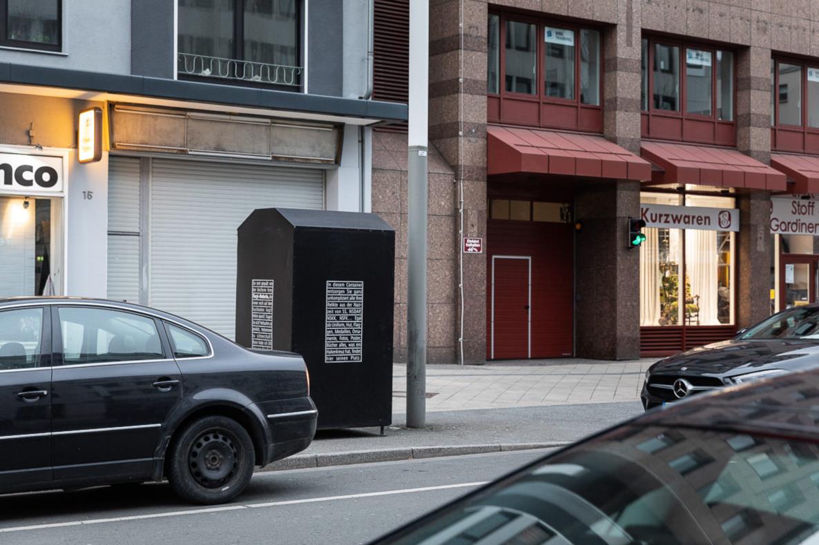 Yoshinori Niwa provokes a reflection on the relationship between private and public space. He places particular focus on historical reconciliation and the attached responsibility of different generations. His old clothes container for the disposal of unwanted or compromising relics from the Nazi era, after stops in Graz, Vienna, Düsseldorf and Cologne, is now located in a place where a store opened in 2019 that sold, among other things, the clothing brand ‘Thor Steinar’ popular with neo-Nazis.