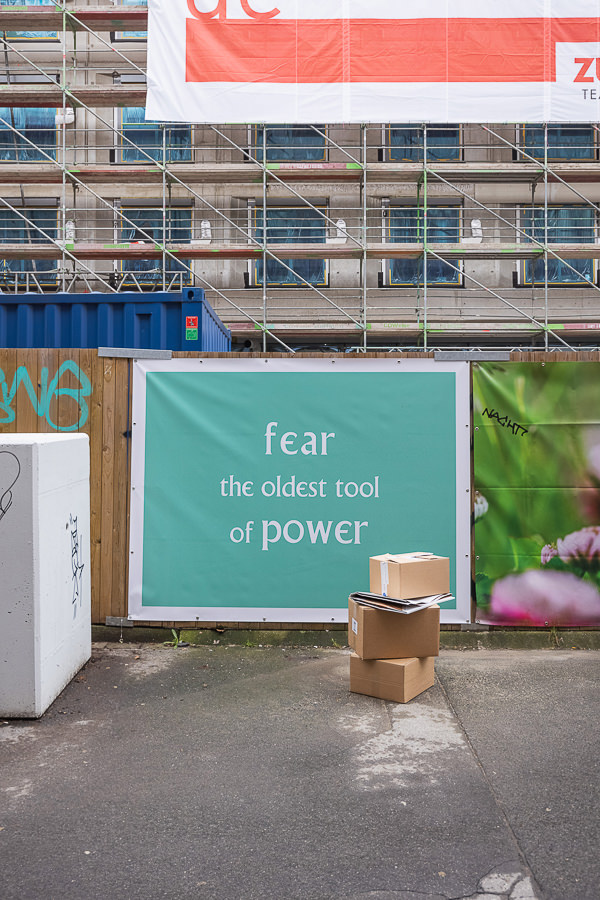 Angharad Williams combines sculptural and text-based elements with performative actions in her installations. Her poster series ‘Questions’ subtly encourages reflection on behaviour and social structuring. Initially disguised in the graphic noise of urban infrastructure, Williams's work is a subversive gesture that throws fundamental questions at its audience.