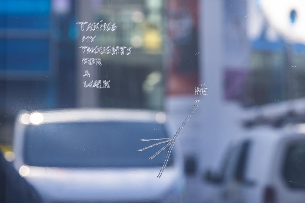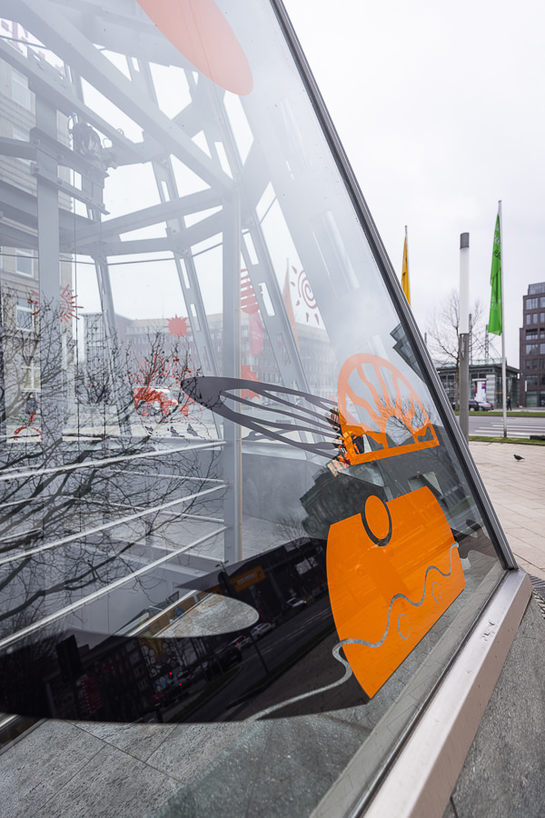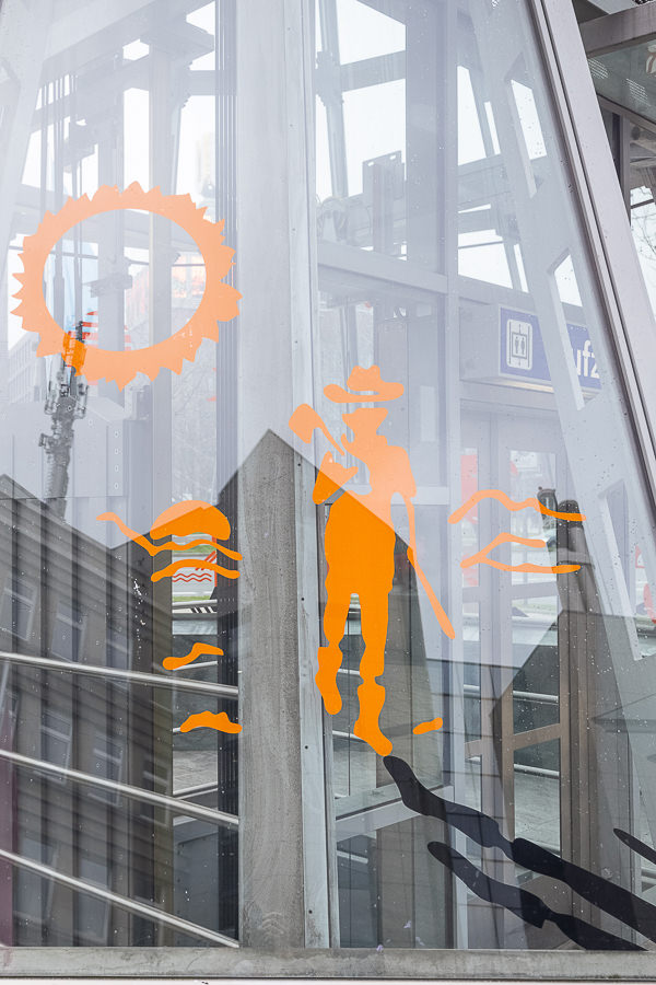 Esther Adam creates drawings and short texts that she applies to window surfaces with transparent gel. In her delicate, sometimes barely visible works, the Bremen-based artist often deals with the complex interrelationship of the individual with their personal and social environment. Her poetic works appear again and again on various glass facades as companions on a stroll along Kampstraße. So keep your eyes open!