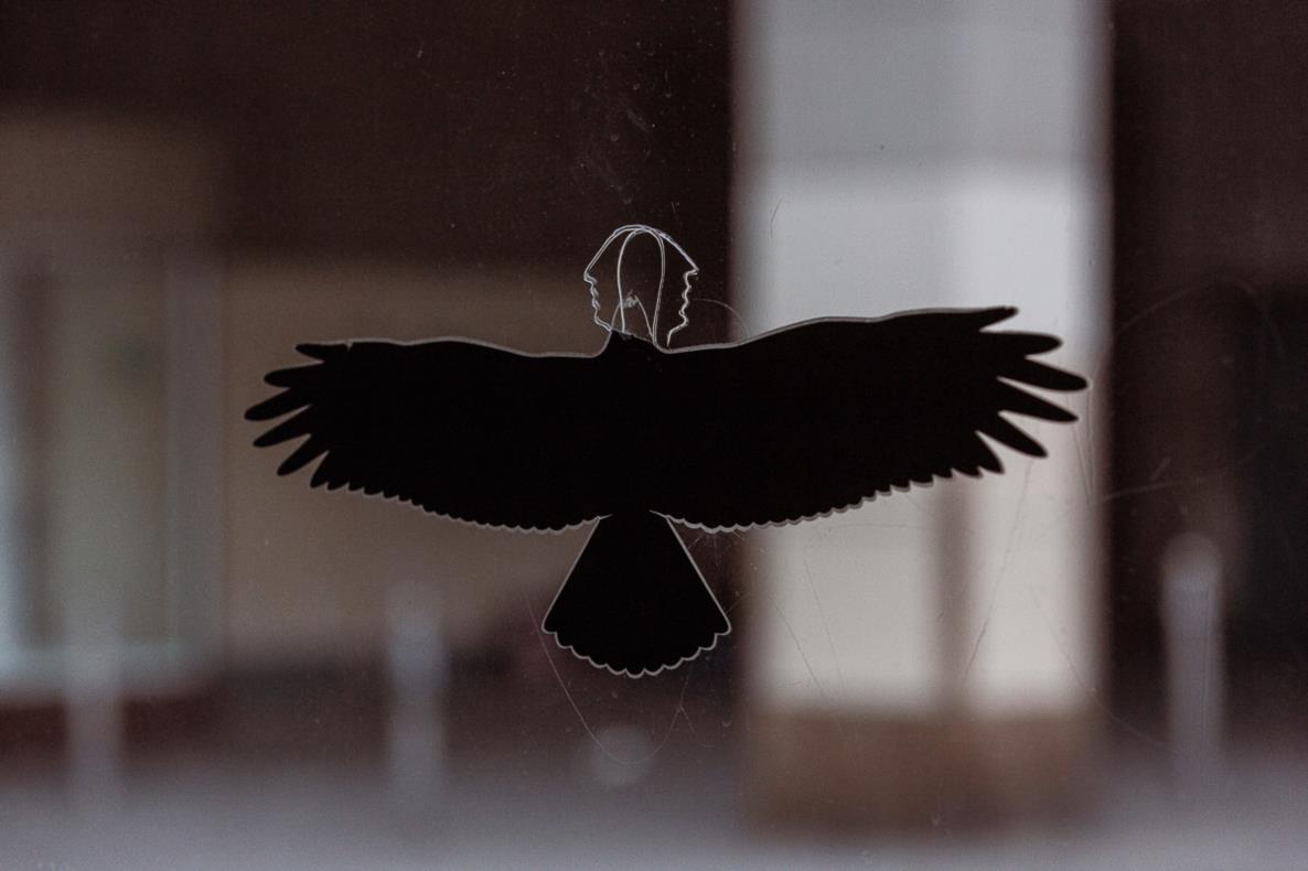The German-Colombian artist deals critically with the representation of the supposed ‘other’. Through his site-specific work, he gives Buffalo's plaza a new reading by reinterpreting the cone-shaped architecture of the subway elevator as a teepee, the traditional dwelling of indigenous peoples in North America. The buffalo sculpture in the plaza contemplates with some distance the seemingly romantic sunset motif composed of logos from the fruit trade.
