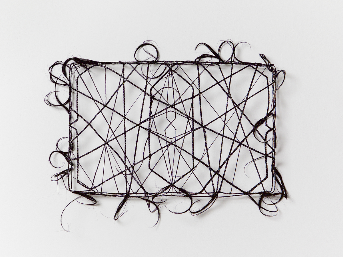 Silent Voices in a Palm Grove, rising up from the undergrowth in the cover of twilight. They fight for freedom by reversing the means of repression. They are robed as warriors in armour made of hair, and they stand – like the visitors to the exhibition – behind a large curtain that protects the Kunstverein from prying eyes.