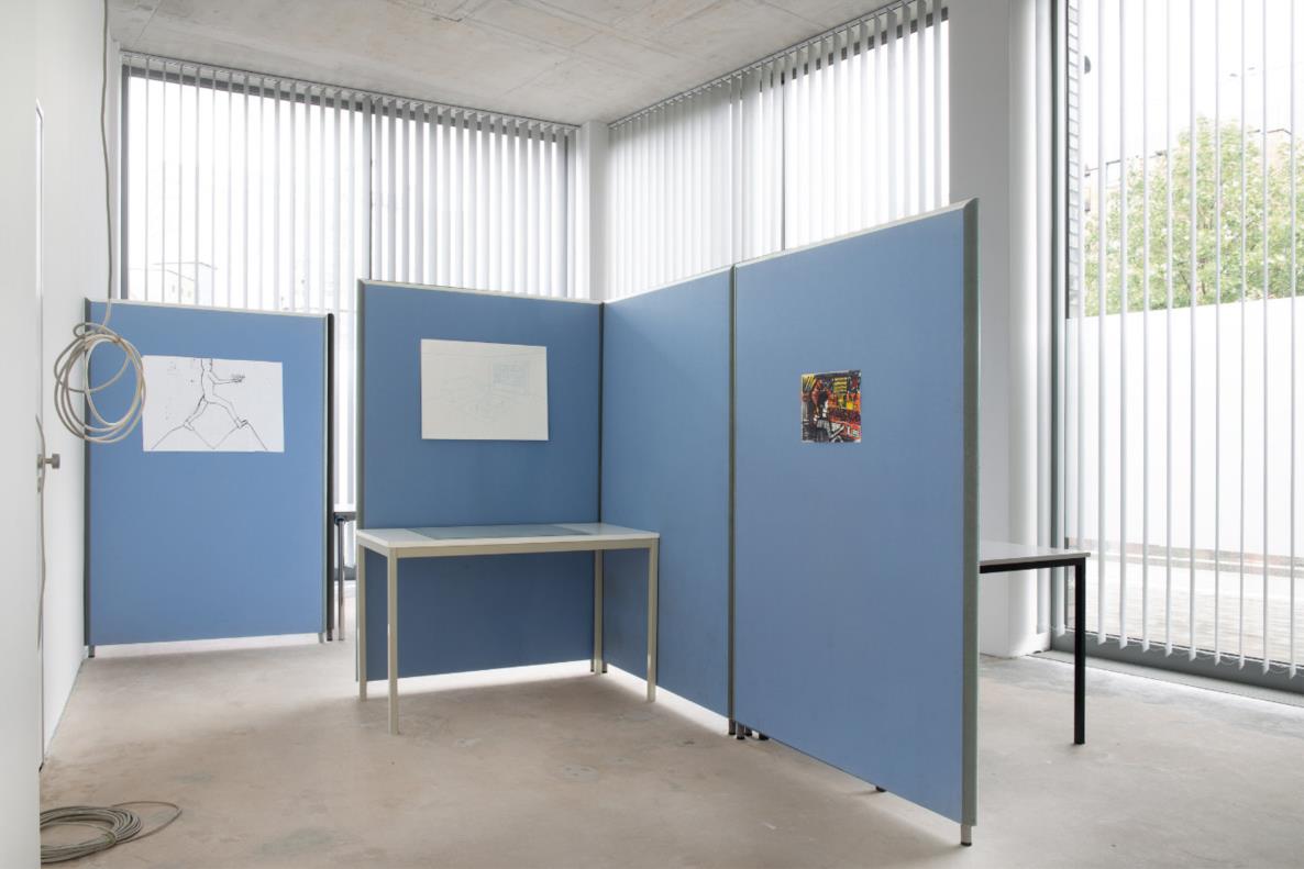 Die Ausstellung findet im Rohbau der neuen Räumlichkeiten des Kunstvereins statt, die vormals als Versicherungsbüro genutzt wurden. Durch die Pandemie stehen verwaiste Bürogebäude nun für eine Zeitenwende: Die Ruinen der Büroarchitektur der frühen 2000er Jahre bieten Raum, die Welt in ihrem Status Quo zu betrachten, zu ordnen, zu kontextualisieren. Anstatt zu überhöhen und zu überwältigen, lässt die nüchterne Setzung dieser Kulisse die Kunst fast beiläufig wirken und gibt ihr außerhalb des Spektakels die Möglichkeit, ihre Eigenständigkeit zurückzuerlangen.